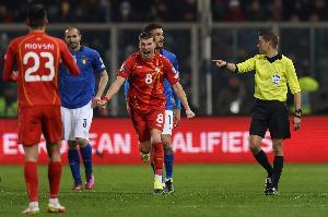 2022年3月,世界杯附加赛半决赛,意大利补时遭绝杀,0-1爆冷不敌北马其顿,无缘2022卡塔尔世界杯。那场比赛的主裁判,正是法国主裁蒂尔潘。