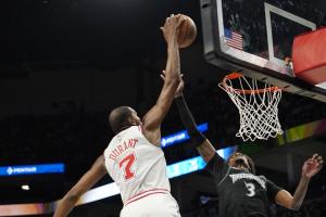 本场比赛,杜兰特前三节进攻端被针对性防守,打得非常难受,效率也不佳;末节他找回状态连续暴扣拖入加时,加时赛还命中三分,但关键绝平罚球罚丢,最终球队饮恨。