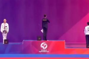 无声抗议!艺术体操世界杯奏乌克兰国歌时,俄罗斯运动员背过身去